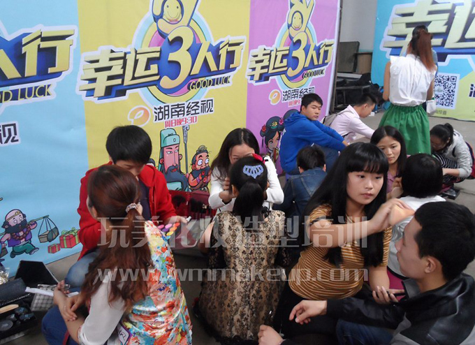 2014年5月19日玩美化妆美甲培训学校受邀为湖南广播电视台经视频道主打节目【幸运三人行】提供化妆造型服务,玩美化妆造型培训学校是湖南经视唯一合作化妆造型单位,常期为学员提供电视台等实训机会!