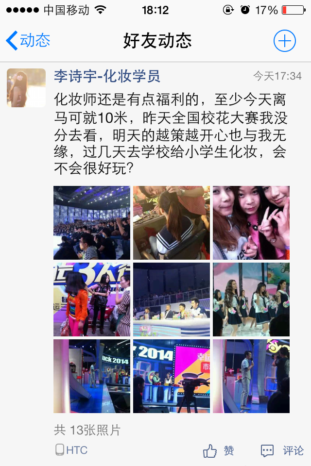 今天小伙伴们与马可近在咫尺,看到她们忙碌完后观看现场节目那真兴奋劲,虽然此次的电视台化妆造型还有近过半的学员因工作和其它事情未能参加,但后期还会有很多机会哦,希望亲们好好努力,学好技术,下次再带你们过去,加油!