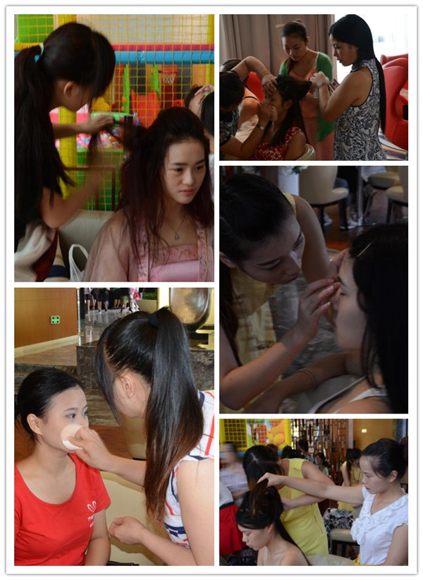2014年8月2日,由湖南导视频道“图话世象”栏目组举办的“七夕浪漫满屋西瓜纳凉盛世会”在盛世耀凯营销中心广场隆重举行,玩美化妆学校作为湖南导视频道“图话世象”栏目级指定签约化妆造型单位,特受邀为本次活动全程提供专业的化妆造型服务,玩美化妆学校造型总监彭老师特带领部分优秀学员前往活动地点为出镜佳宾提供化妆造型服务,我校学员高超的化妆造型技术水平受到了活动主办方的一致好评!